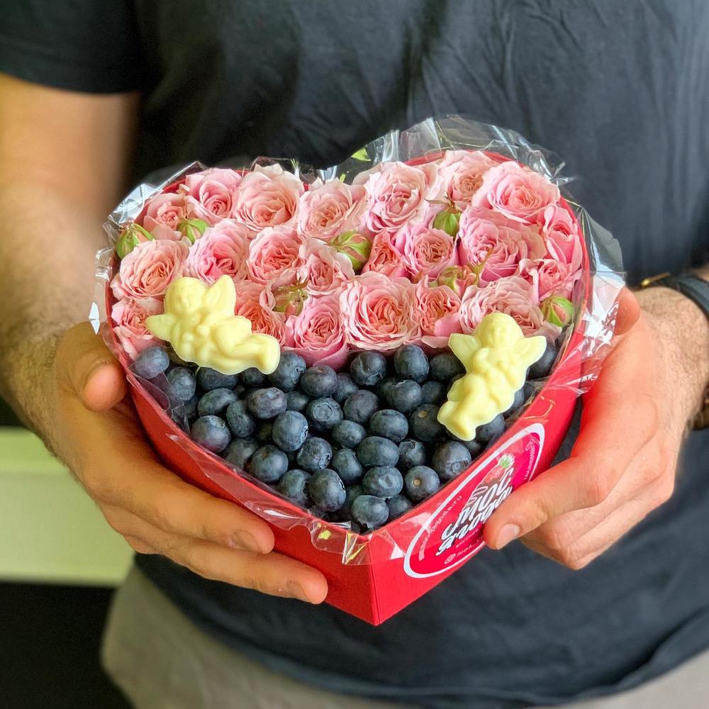 Коробка из голубики и роз