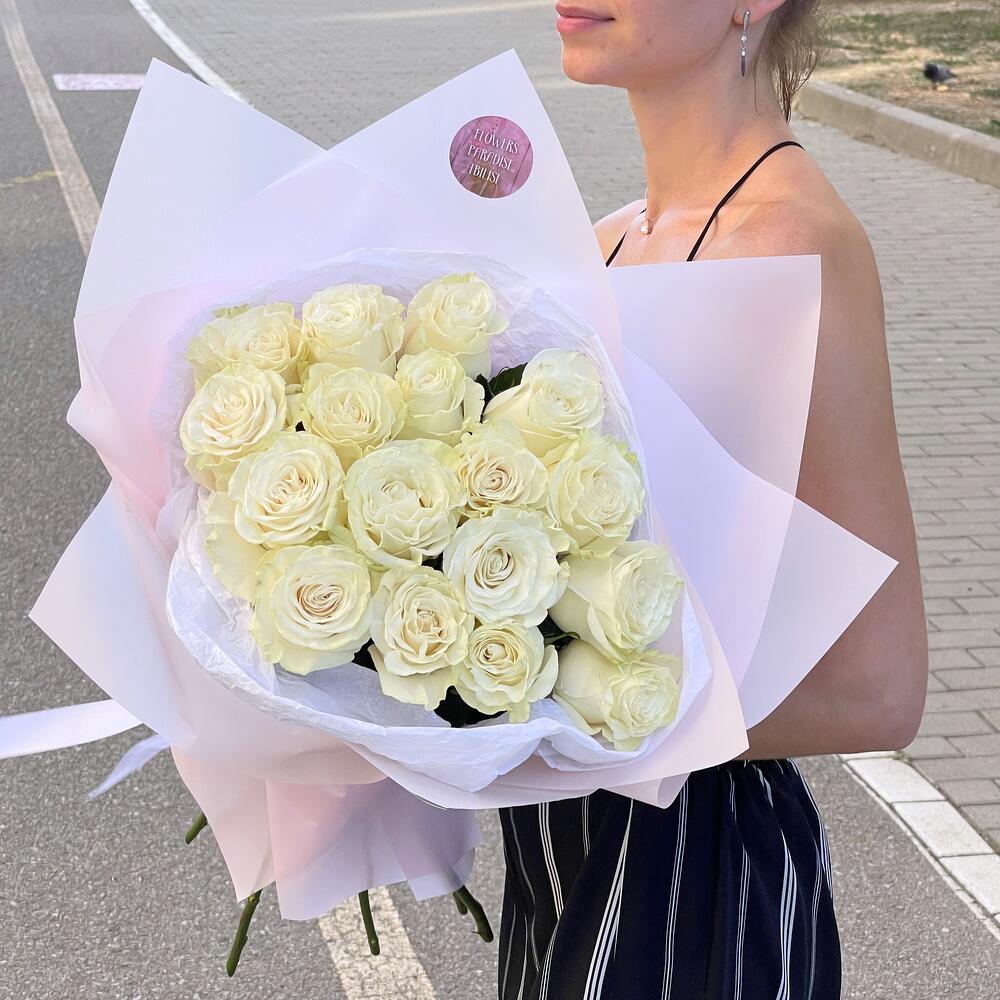 Этот монобукет белых роз – проявление чистоты, нежности и восхищения. Создайте настоящий праздник для ваших родных и близких с этим удивительным букетом, состоящим только из свежих цветов. Бесплатная доставка по Тбилиси делает заказ еще более легким и приятным.