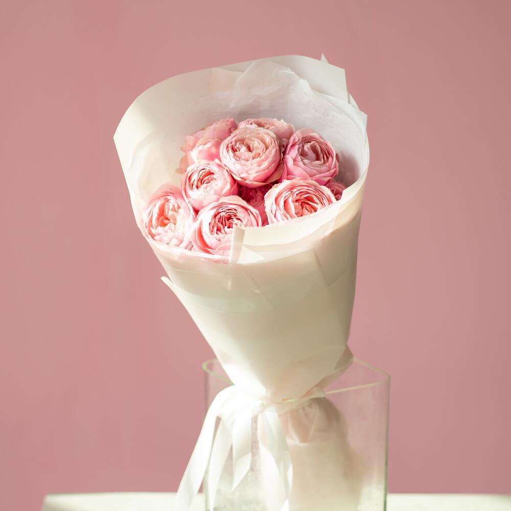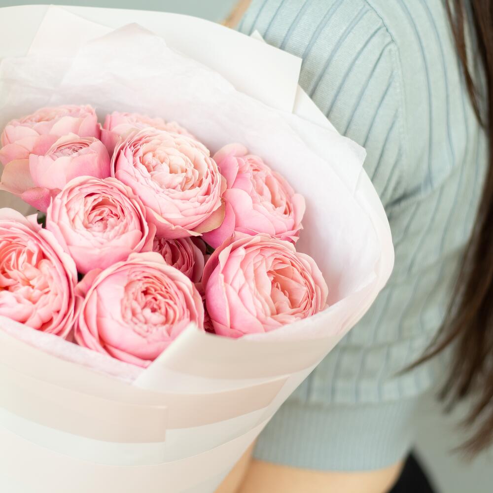 Нежный монобукет пионовидных кустовых роз Сильвия пинк в размере S