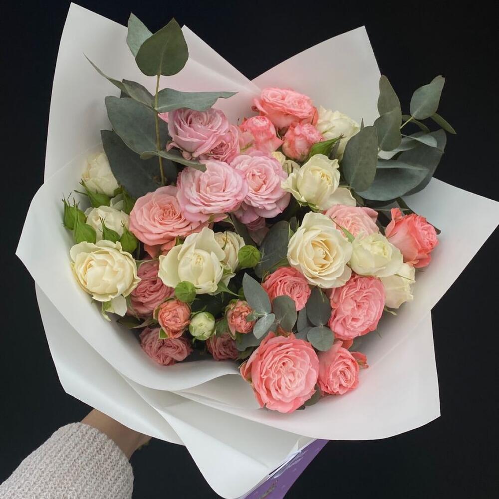 кустовые пионовидные розы – 11 шт. Упаковка дизайнерская – 1 шт. Открыточка с вашими пожеланиями – 1 шт. инструкция по уходу за цветами – 1 шт.