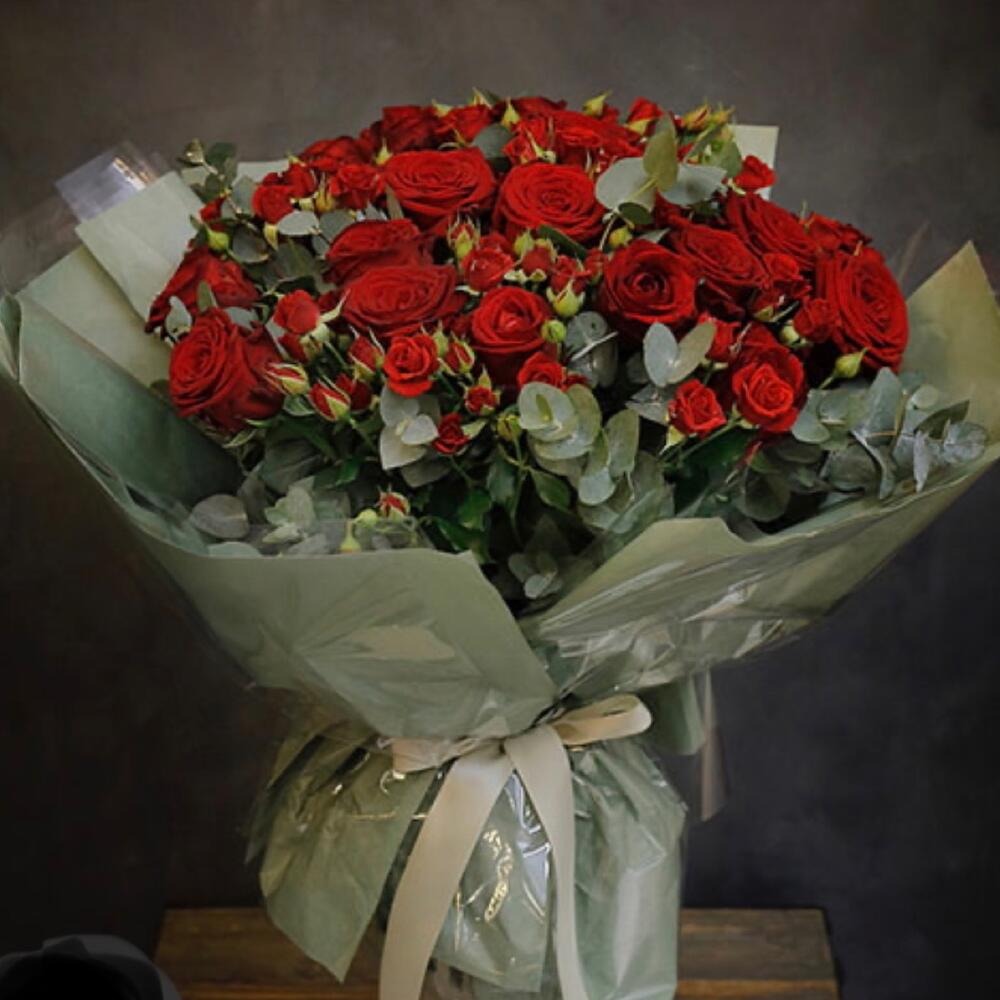 Роза Эквадор – 15 шт. Роза кустовая – 9 шт.