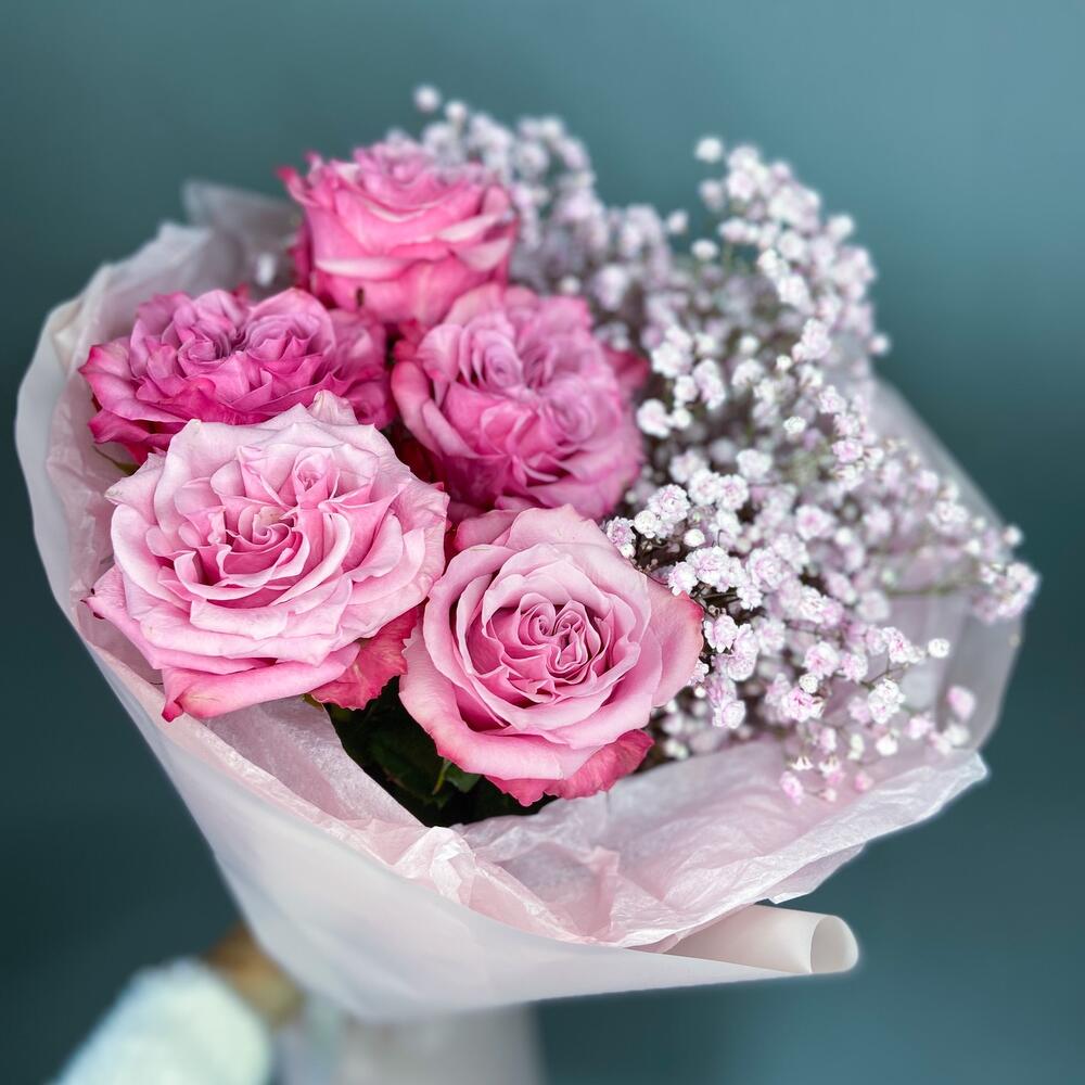 Гипсофила розовая – 3 шт.роза кантри блю – 5 шт.