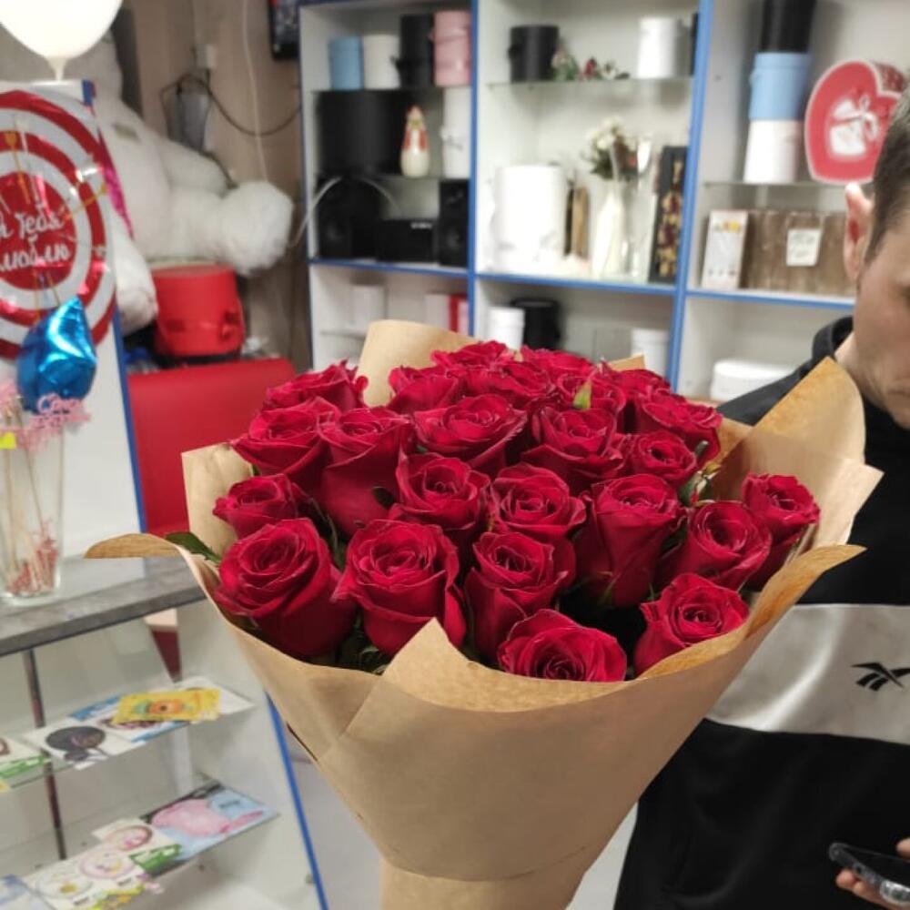 Красивый букет из Эквадорской розы 25 штук 70 см хит продажСтойкость превосходит Россию и КениюБутон крупный, богатая листваГармония, свежести 100%Уход за цветами очень проситНабрать в чистую вазу холодной воды , подрезать острым ножом 45% градусов , и поставить в прохладное местоНельзя ставить у батарей и на солнцеТак же на кухне ! Менять водичку каждый день и освежать срез !