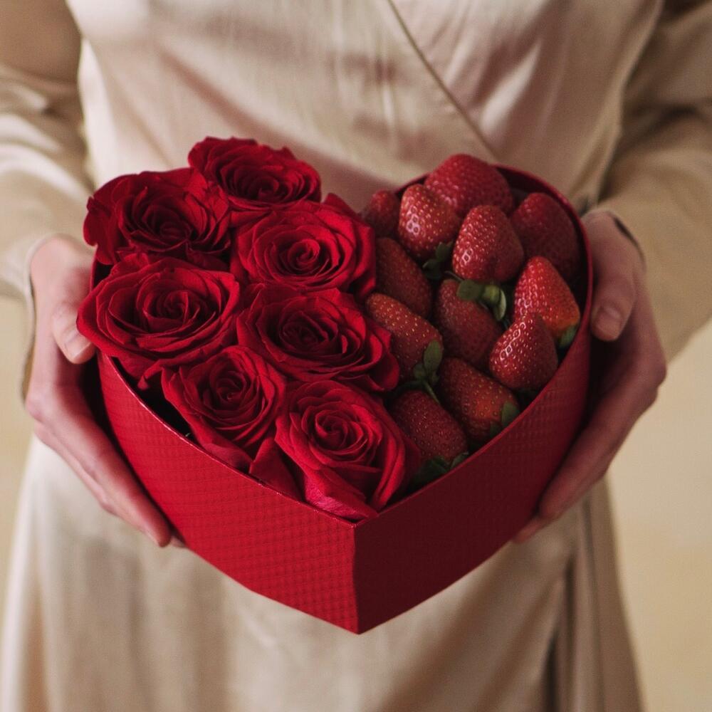 КлубникаРозыКоробка с цветами