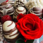 Роза – 7 шт.Лента атласная – 1 шт.Шляпная коробка – 1 шт.Клубника в шоколаде – 500 гр.