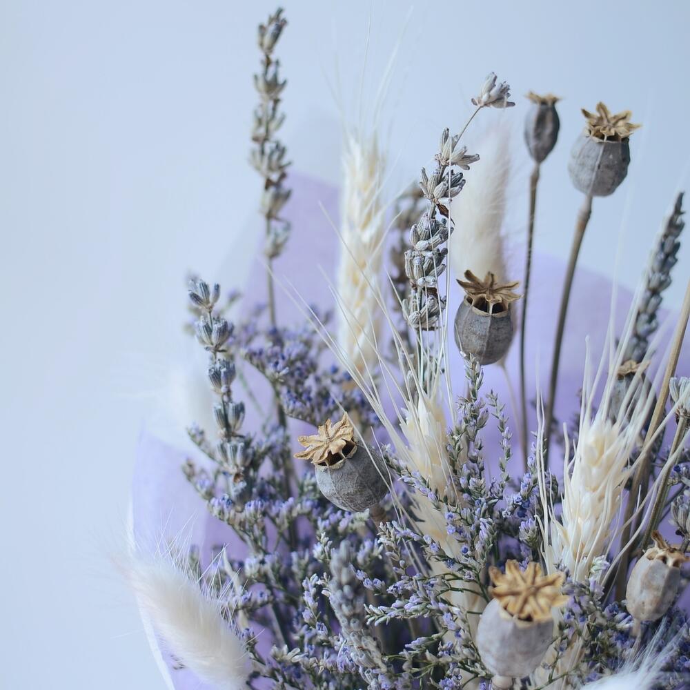 Букет из сухоцветов с лавандой и маком