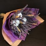 «Лавандовое созвездие» Букет из розы, гвоздики, статица и хлопка