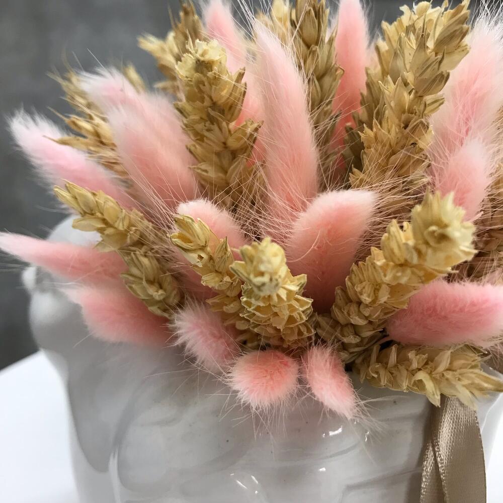 Лента атласная – 1 шт.Оазис флористический – 1 шт.лагурус пучок – 5 шт.колосья пшеницы пучок – 5 шт.птица декоративная керамика – 1 шт.