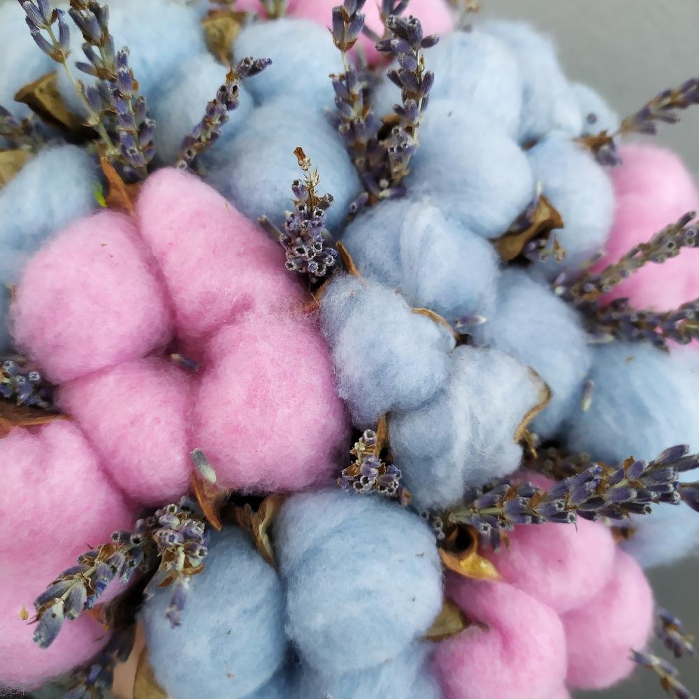 Хлопок – 12 шт.Лаванда – 22 шт.Шляпная коробка – 1 шт.Оазис – 1 шт.