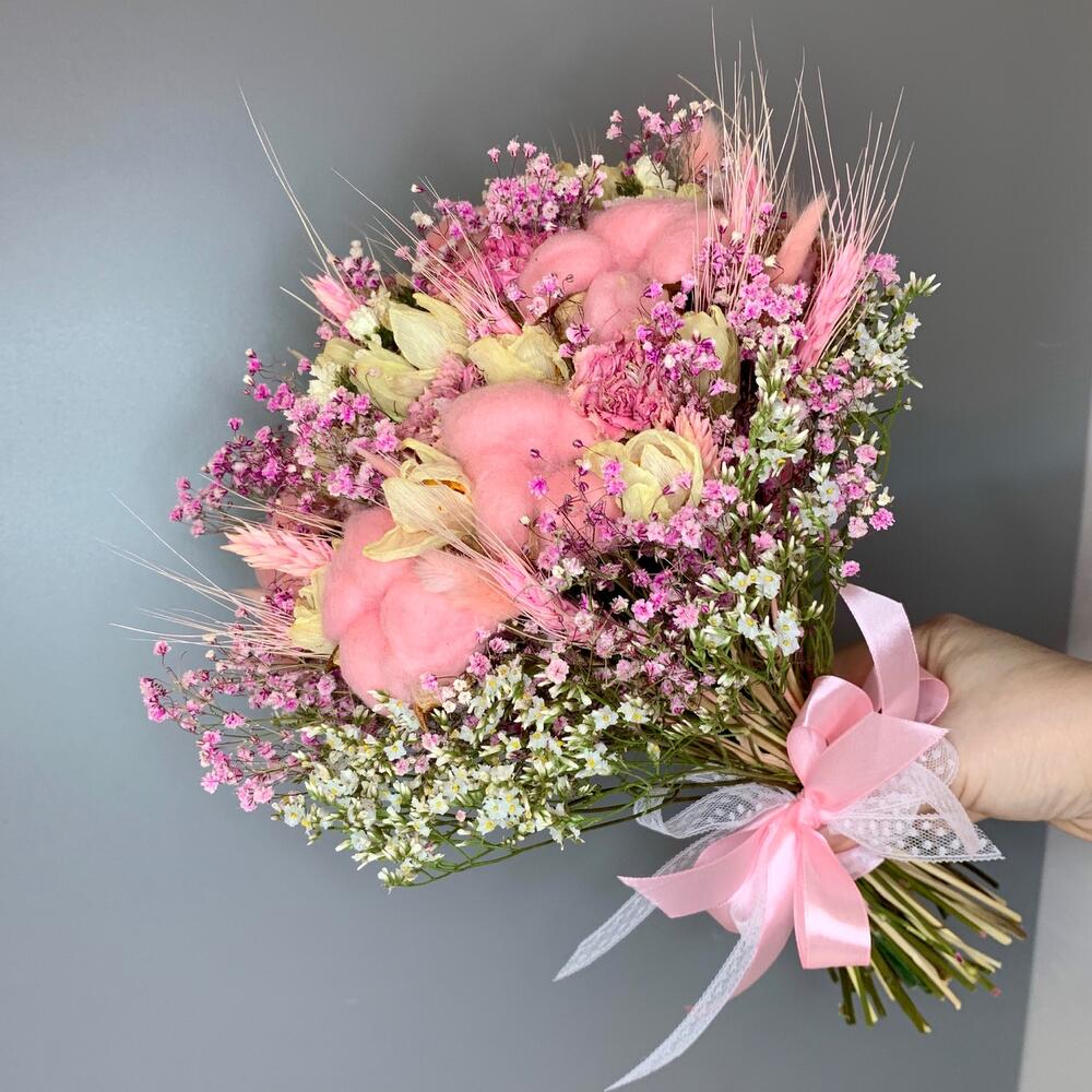 Нежный букет из сухоцветов в розовых тонах
