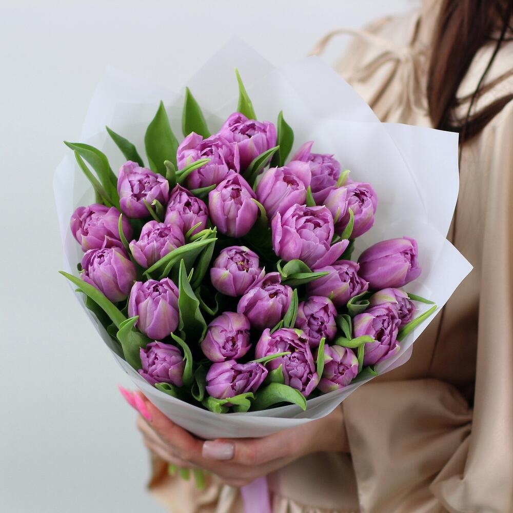 25 пионовидных сиреневых тюльпанов дабл прайс. Букет 200 Kimbirly Flowers