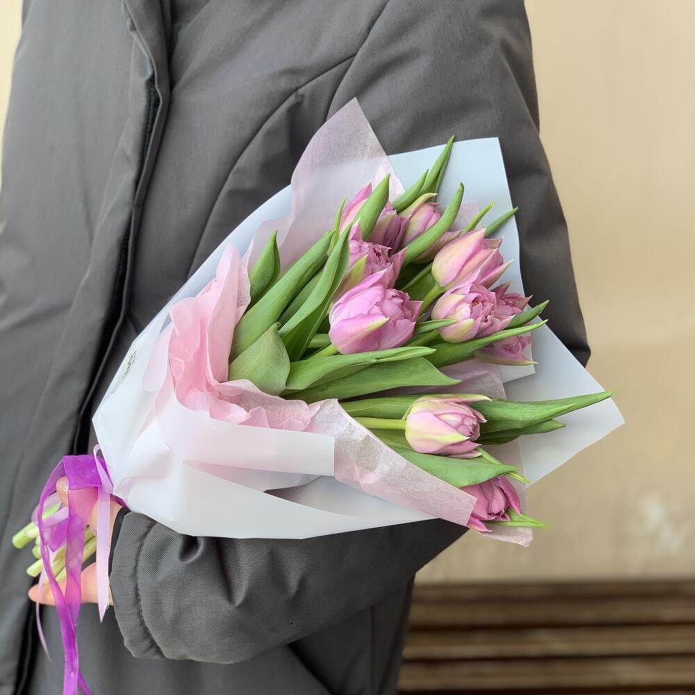 Нежный букет сиреневых пионовидных тюльпанов 9 шт / 1175 id