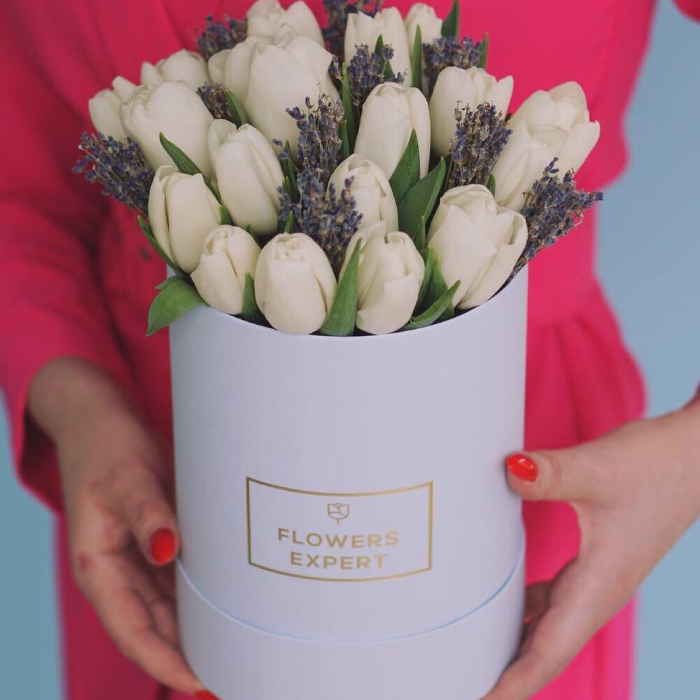 Тюльпан – 25 шт.Лаванда – 25 шт.Шляпная коробка – 1 шт.