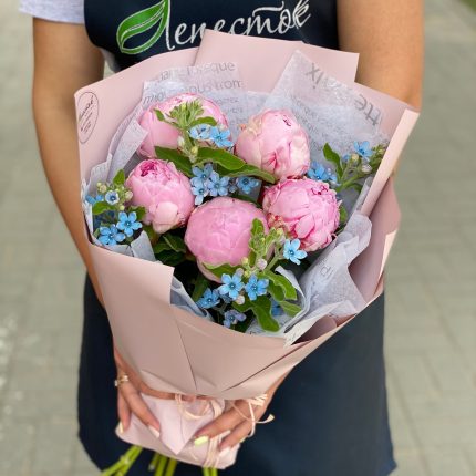 Букетик из пионов и твидии
