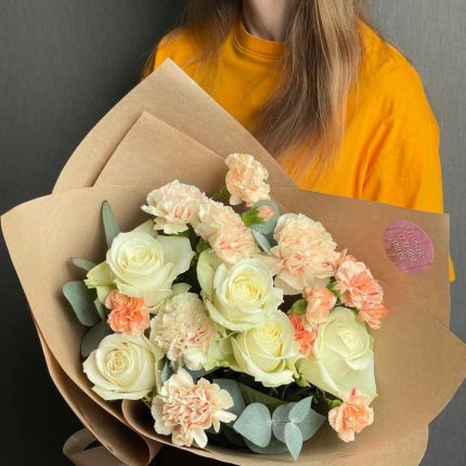 Букет Лучшее Признание S из танацетума и кустовой пионовидной розы сильвиа пинк