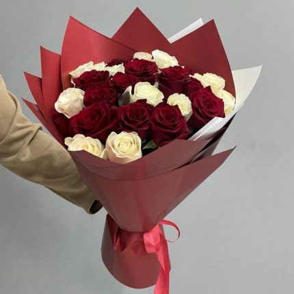 Букет из 19 бело малиновых роз