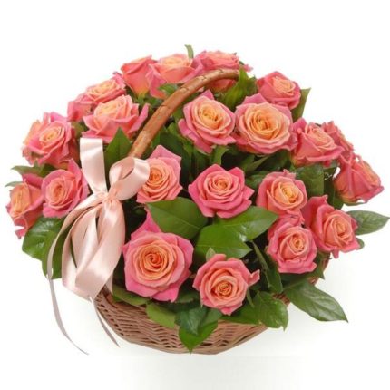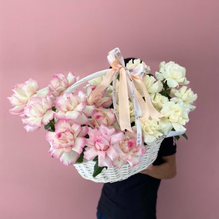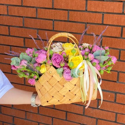 Корзинка Для Мамы из розовых роз и эвкалипта